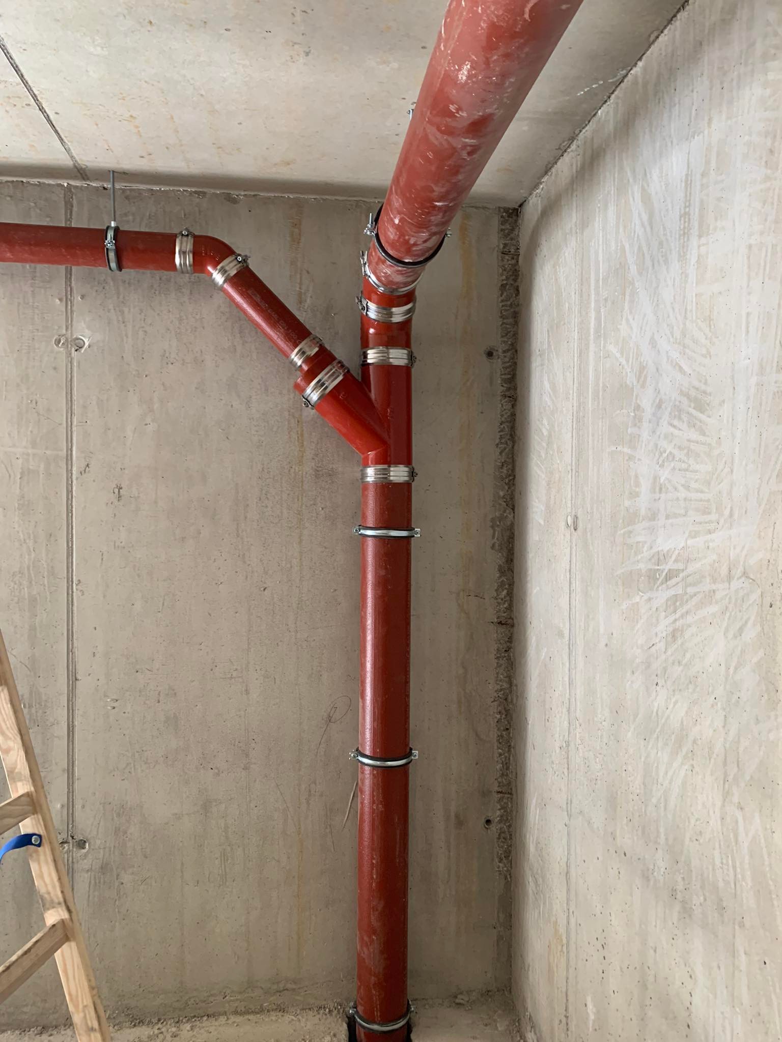 Izvedba meteorne kanalizacije iz LTŽ cevi v garažah novega stanovanjskega kompleksa, Črnuče, 350m DN100-200